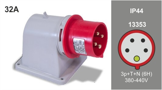 FAMATEL ipari ráépíthető dugvilla 3P+N+F 380V 32A IP44 90°, 13353, Famatel S.A