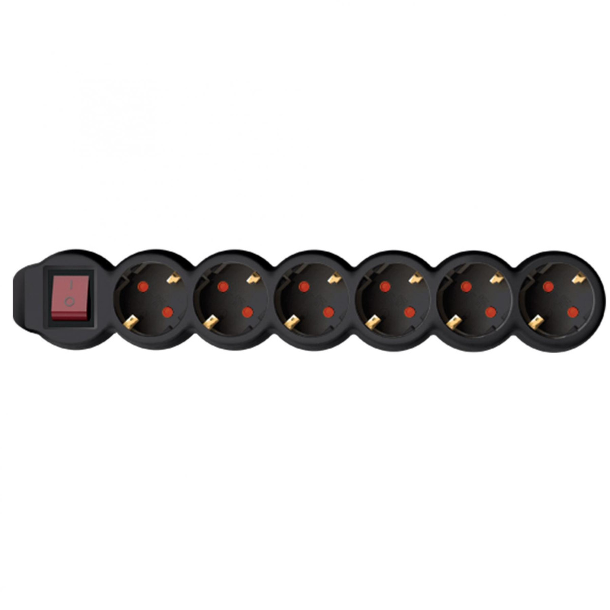 Home NV 6K-3/BK/1,5 hálózati elosztó, 3 m, H05VV-F 3G1,5 mm2 kábel, kétpólusú kapcsoló, IP20 kivitel, 6 védőérintkezős aljzat, max. 3500W, fekete