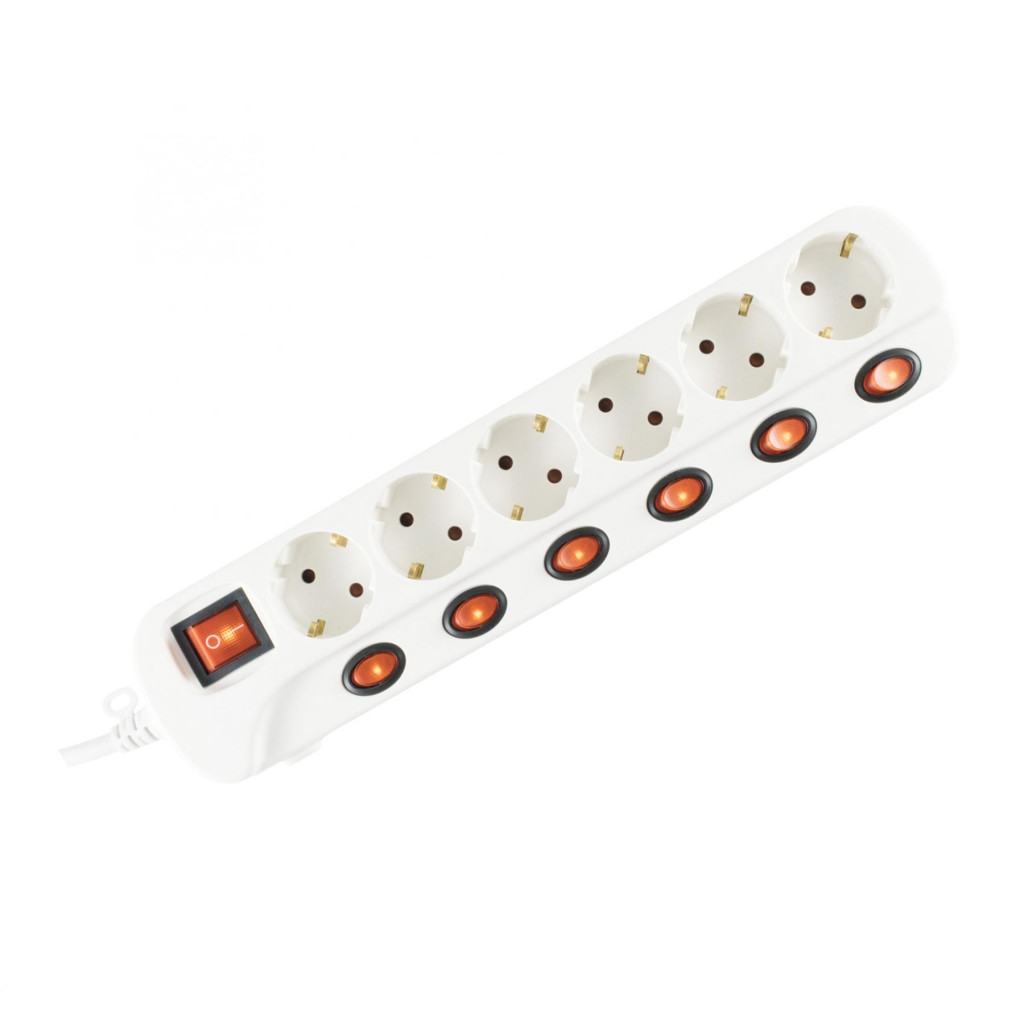 Home NVK 06K-3/WH/1,5 hálózati elosztó, 3 m, H05VV-F, 3G1,5 mm2 kábel, kapcsolós, 6 aljzat gyermekvédelemmel, max. 3500W, fehér