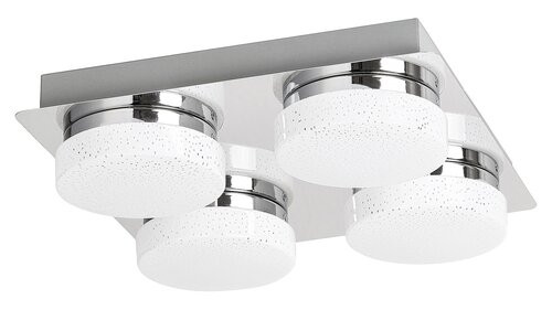 A csillogó effekttel készült Hilary négyes mennyezeti lámpa elegáns és hangulatos kiegészítője lehet modern nappalink vagy hálószobánk berendezésének. A fémből és műanyagból készült spotlámpa króm színű testét opál búrák egészítik ki, melyek alatt négy darab beépített, energiatakarékos LED fényforrás rejtőzik. A fényforrások teljesítménye összesen 20 W, fényerejük 1600 lumen, élettartamuk mintegy 20 000 óra. Színhőmérsékletük 4000 K, ennek megfelelően természetes fehér fénnyel világítják meg környezetüket. A lámpa négyzet alakú dísztalpának mérete 280x280 mm. A Hilary négyes mennyezeti lámpára 5 év garanciát vállalunk.