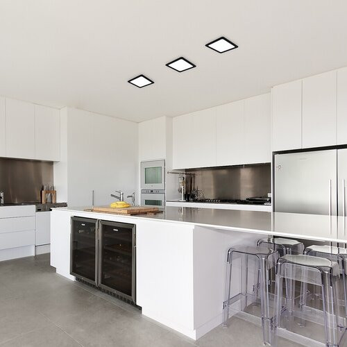 A minimál stílusú, beépíthető Shaun 2 mennyezeti lámpát elsősorban modern nappalikba, étkezőkbe, konyhákba és dolgozószobákba ajánljuk. A szögletes modell műanyagból készül, a fekete lámpatestet fehér búra egészíti ki. Letisztult megjelenésének, valamint a mennyezetbe süllyeszthető kivitelnek köszönhetően diszkréten és elegánsan simul bele a szoba berendezésébe. A Shaun 2 a G energiaosztályba tartozó beépített LED fényforrással rendelkezik, amelynek teljesítménye 12 W, fényereje búrával 810 lumen, búra nélkül 1200 lumen. A 4000 K színhőmérsékletű fényforrás élettartama 25 000 óra. A természetes fehér fénnyel világító Shaun 2 segítségével modern, tiszta hatást érhetünk el, ami nemcsak a lakás nagy forgalmú helyiségeiben, de munkavégzéshez is ideális. Ez a modell kisebb helyiségekben önmagában is megállja a helyét, de egy tágasabb szobában többet is felszerelhetünk belőle. A lámpa mérete 170x170 mm, mennyezettől mért távolsága 3 mm, beépítési átmérője 125 mm, beépítési mélysége 25 mm.
