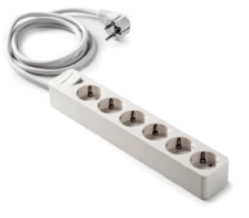 Földelt szerelt elosztó hatos /hosszanti/ 1.5m vez, kapcsolós, krém, 16A-250V, 2518, Famatel S.A
