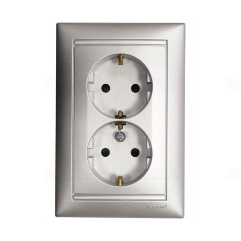 Legrand Valena 2x2P+F csatlakozóaljzat biztonsági zsaluval, alumínium Legrand 770127