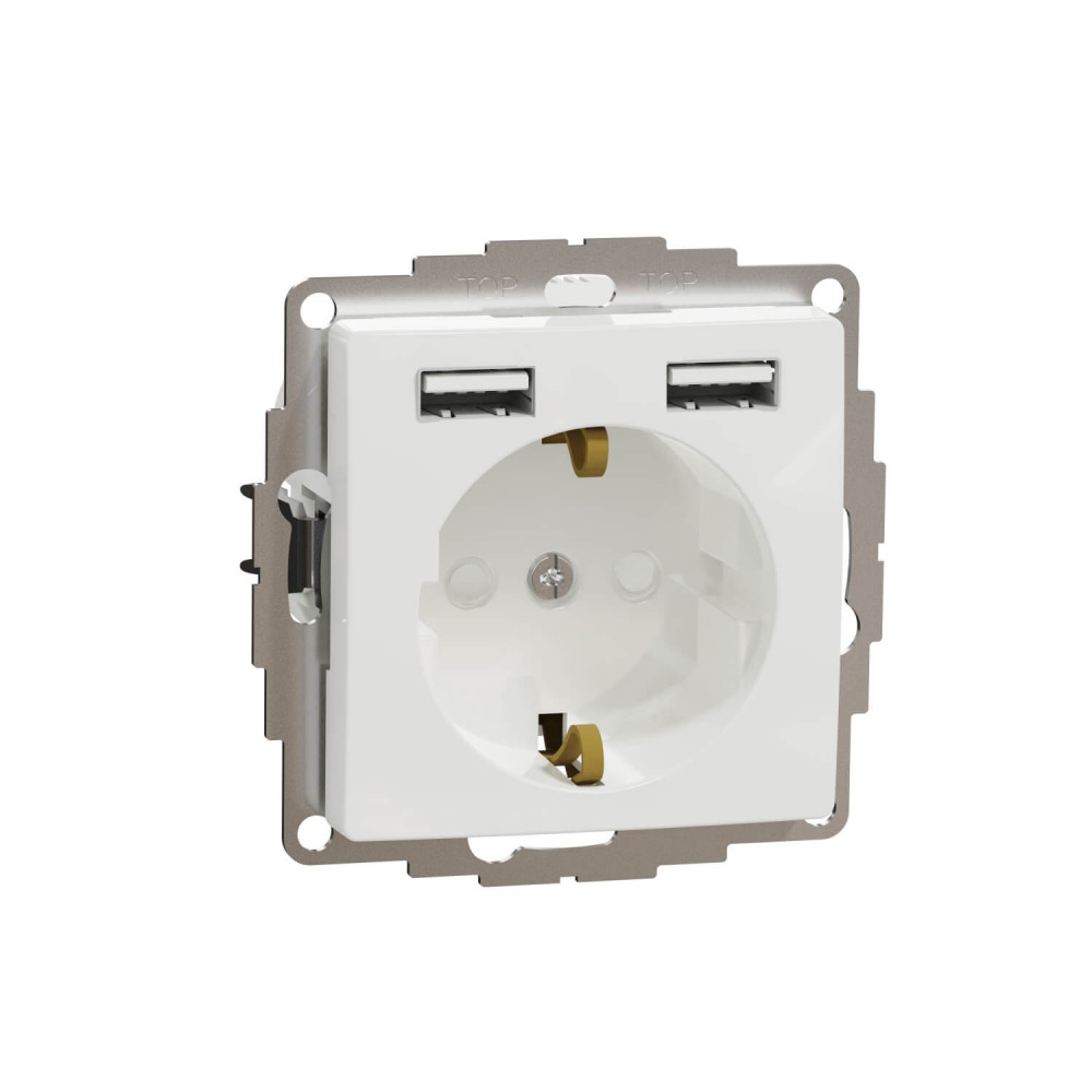 ÚJ SEDNA 2P+F csatlakozóaljzat, BZS, kettős USB töltővel, rugós, 16A/2.4A, fehér Schneider SDD111052